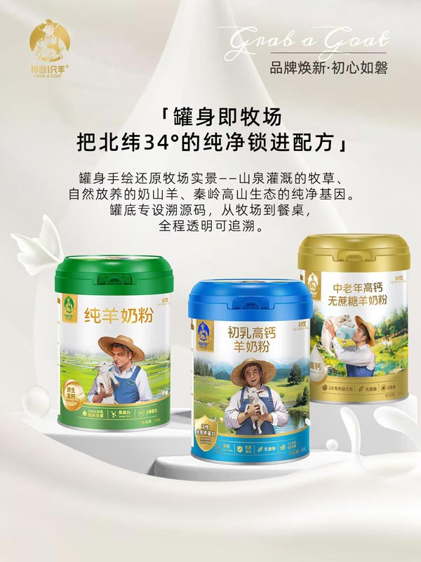 “拎回1只羊”全新包装以手绘形式复刻蓝田玉山有机牧场全景,生动呈现有机牧草、活力奶山羊等牧场原生元素,每一处细节都饱含着品牌对秦岭奶源地的珍视。罐底专设“溯源码”,实现奶源到成品全程透明可追溯,这份设计巧思背后,是董事长三代对“品质初心”的坚守——让消费者不仅能品尝到秦岭牧场的天然馈赠,更能通过溯源清晰感知每一份产品的诞生历程,做到安心放心。