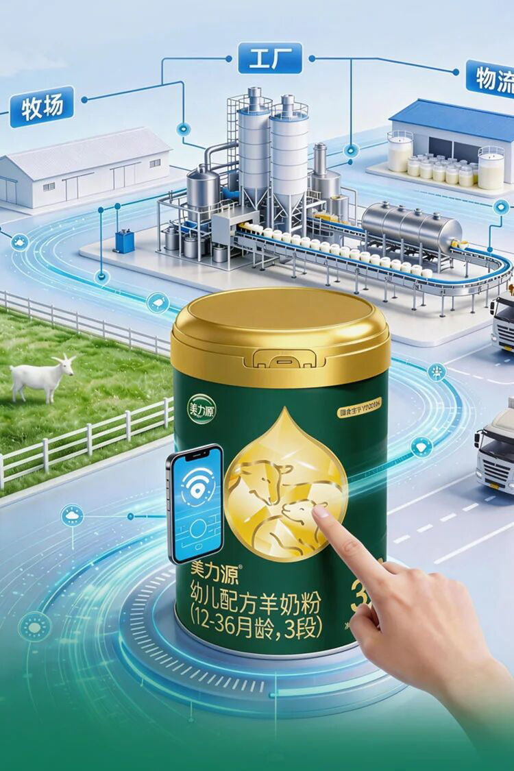 美力源婴幼儿配方羊奶粉采用 “一罐三码”的智能追溯系统(罐底码+膜外码+膜内码)。每一罐奶粉从出厂到上架,每一次流向都尽在掌握。