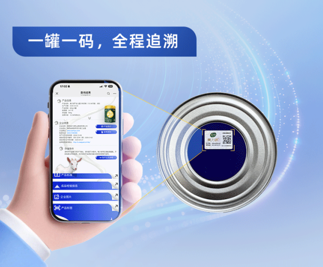 美力源婴幼儿配方羊奶粉采用 “一罐三码”的智能追溯系统(罐底码+膜外码+膜内码)。每一罐奶粉从出厂到上架,每一次流向都尽在掌握。